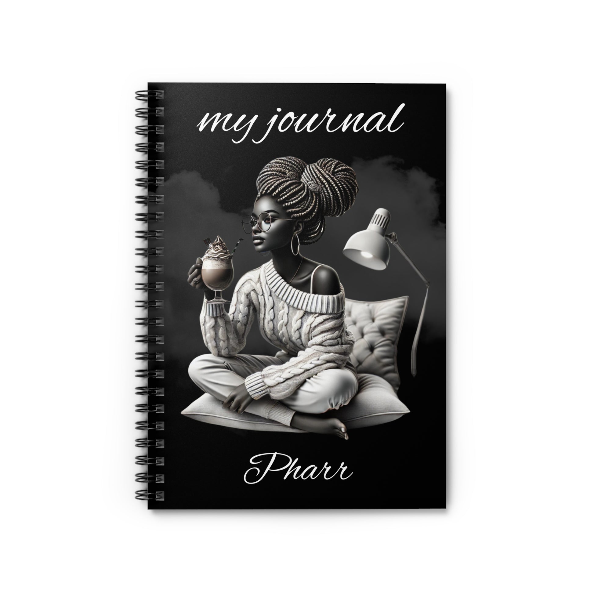 A cozy, reflective Black Woman spiral notebook made for quiet nights and thoughtful moments. The soft-ruled pages and elegant front-cover artwork invite slow, deliberate writing , whether journaling, planning, or sketching out dreams. The metal spiral lies flat for comfortable pen strokes, while an inner document pocket keeps loose notes or mementos safe. Compact enough to slip into a bag, this journal becomes a familiar companion for evening routines, study sessions, or creative breaks.